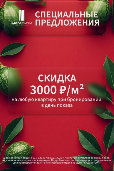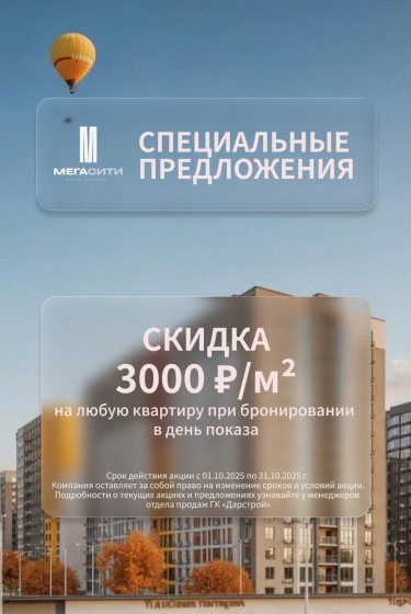 ЖК МЕГАСИТИ - масштабный проект ГК "Дарстрой", представляет собой комплекс класса "комфорт +", расположенный в 20 минутах езды от делового центра Краснодара.